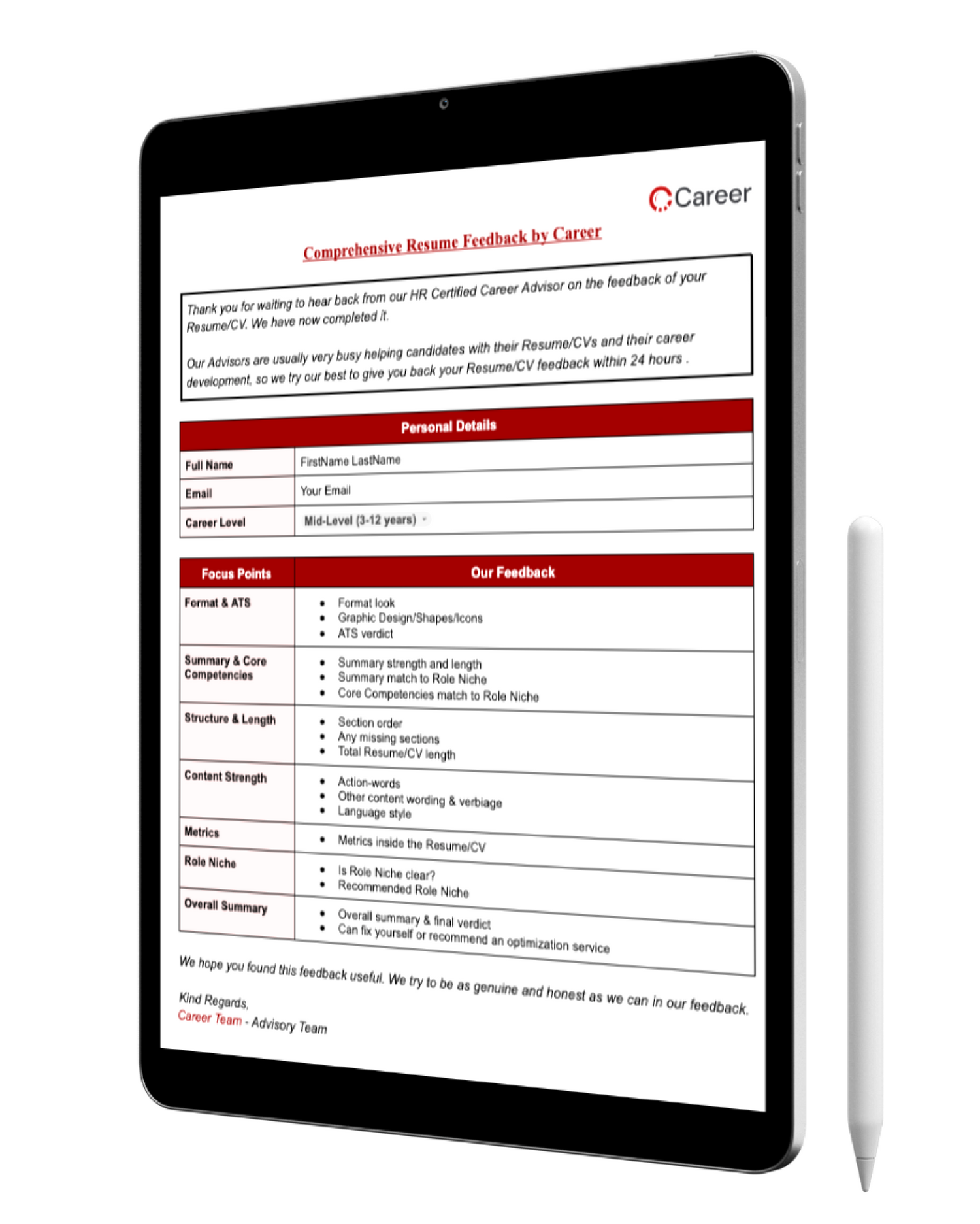 Land 3x more interviews by implementing our feedback to make your Resume/CV shine.