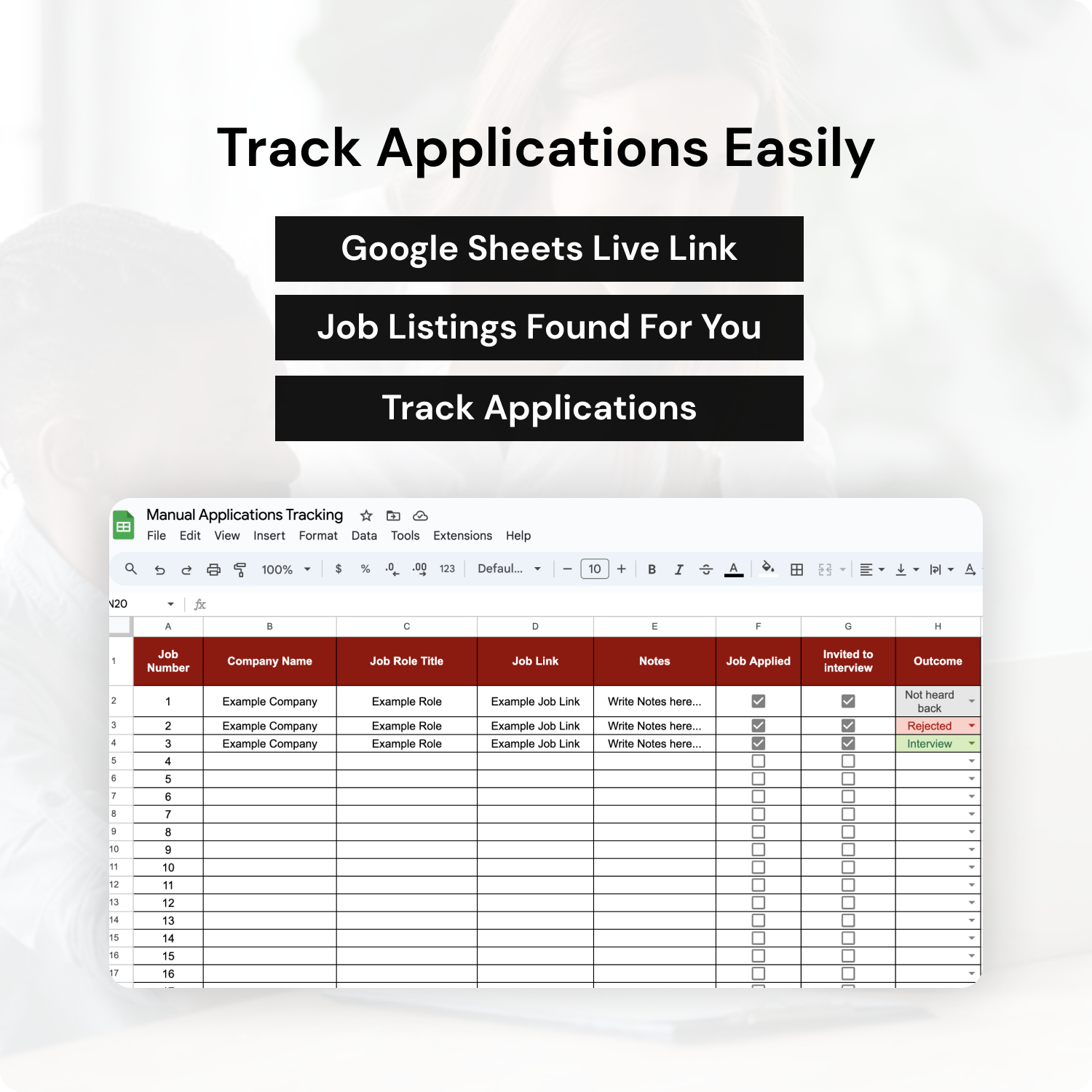 Your dedicated assistant will start applying to the jobs for you and they are dedicated just for you. All progress is tracked live on a simple google sheets to ensure updates are provided. You have 24/7 access to your assistant.